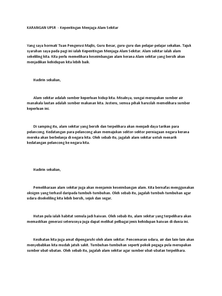 Pencemaran alam sekitar mestilah ditangani. Share & embed contoh karangan upsr. Manusia akan terdedah kepada pelbagai jenis penyakit. Hampir semua aktiviti yang dilakukan memerlukan air. Maka, sesuatu yang pada asalnya bersih dan dapat digunakan dengan baik dan selamat telah menjadi kotor dan mendatangkan mudarat apabila digunakan.