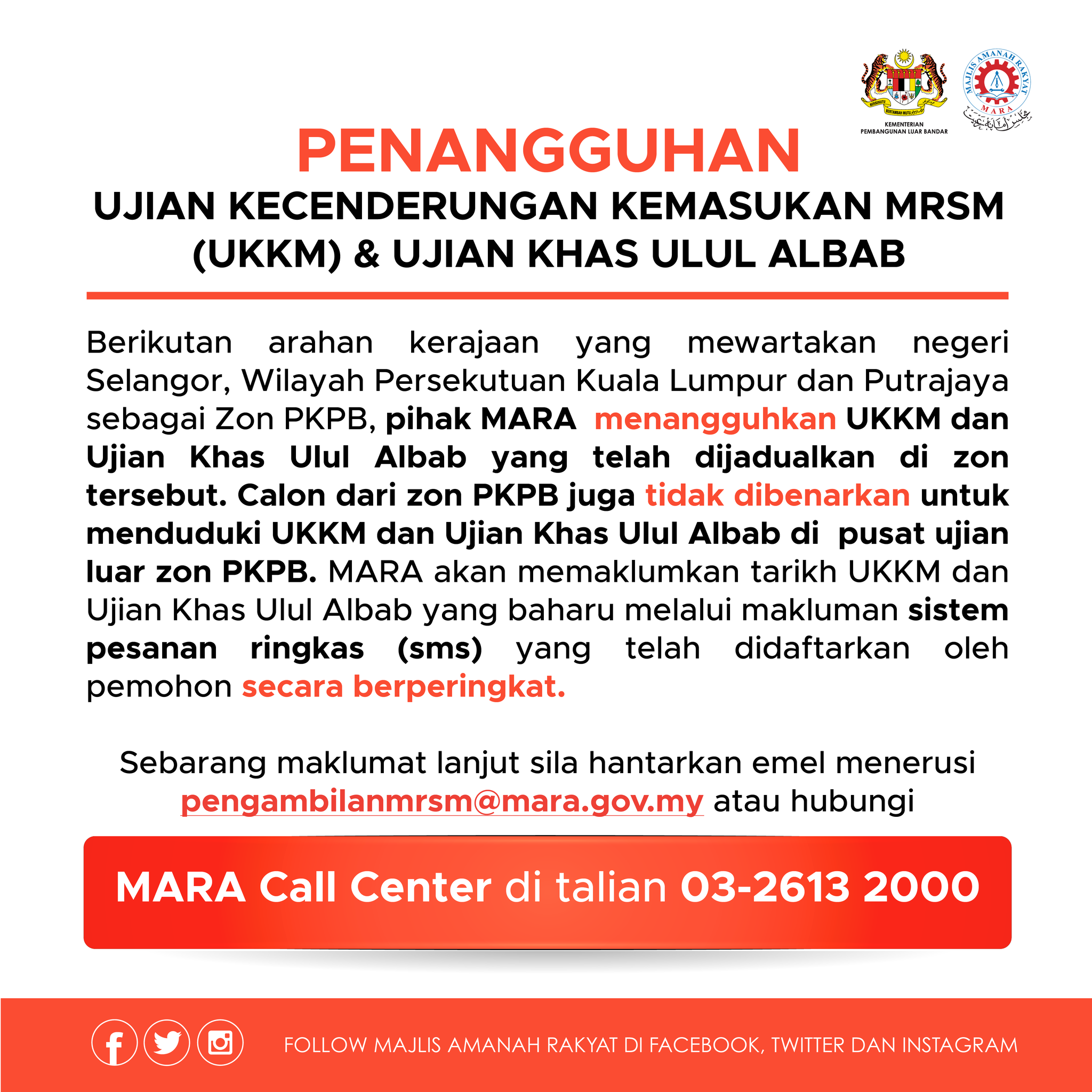 Untuk makluman keutamaan akan diberi kepada pelajar yang berasal daripada keluarga yang berpendapatan rendah. Ujian kecenderungan kemasukan mrsm ini adalah secara online, kecuali ulul albab. Semakan ukkm dan ujian khas ulul albab tingkatan 1 & 4 tahun 2021 pihak mara telah mula memanggil calon untuk menduduki peperiksaan ukkm dan ujian hafazan ulul albab bermula 16 september 2020. Ujian khas ulul albab tingkatan 1. Panduan ukkm mara tingkatan 1 format ujian 2020.